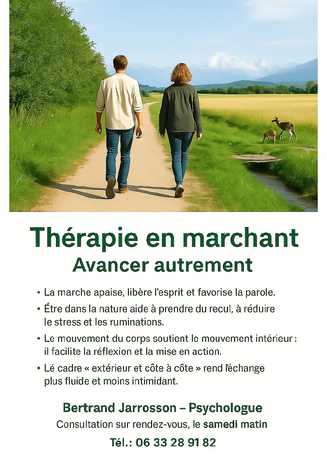 La marche, encadrée par le thérapeute, facilite la réflexion et la mise en action